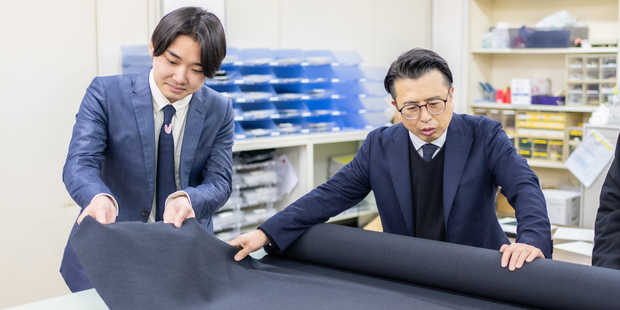 国内の各仕入れ先の担当者と打ち合わせをし、新素材の開発や、弊社の何千品番にもおよぶアーカイブ資料からのリバイバルなども行います。